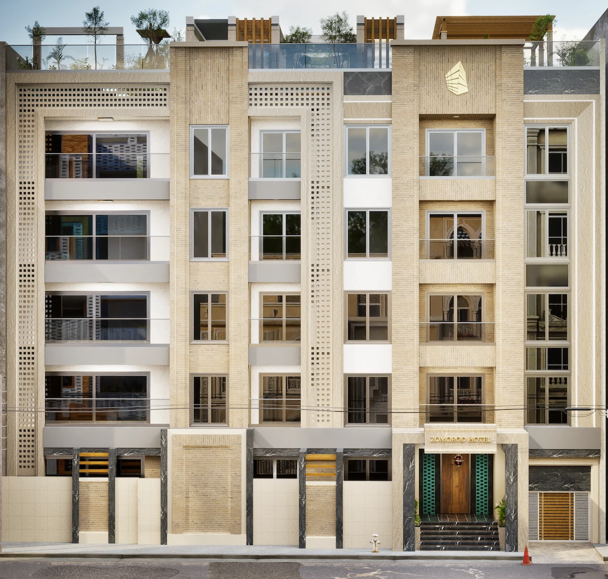 این پروژه در نزدیکی حرم مطهر و در یکی از بافتهای متراکم شهری شکل گرفته؛ جایی که اغلب بناها یا صرفاً برای اقامت کوتاهمدت طراحی شدهاند یا کیفیت سکونت را فدای نزدیکی کردهاند. هتل زمرد مشهد پاسخی است به این دوگانهی ناتمام.